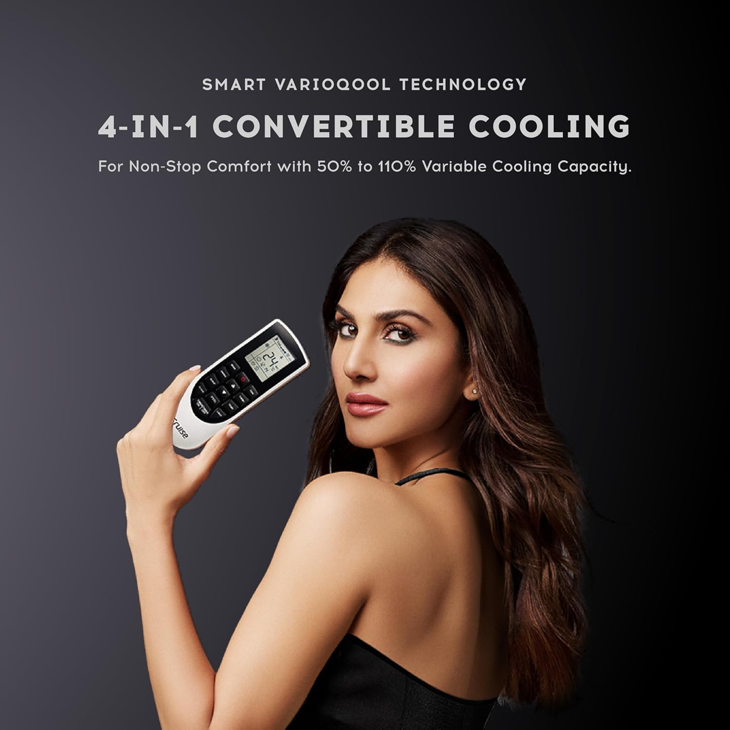 About this item Split AC with inverter compressor: Variable tonnage technology for faster cooling that adjusts power depending on cooling requirement. Capacity (1.5 Ton): Suitable for medium sized rooms (111 to 150 sq. ft.) ; 618 CFM with 4-Way Auto Air Swing Energy Rating : 3 Stars - Best in class efficiency | Annual Energy Consumption: 1274.05 Units per year | ISEER Value: 3.80 (Please Refer Energy Label on Product Page). Manufacturer Warranty: 1 Year Comprehensive Warranty on the Product, 1 Year on PCB, 10 Years on Compressor (T&C) Condenser Coil: Copper Coil (Better cooling and requires low maintenance) with Rust-O-Shield Blue technology: Prevents from rust & corrosion; Increases durability for un-interrupted cooling.