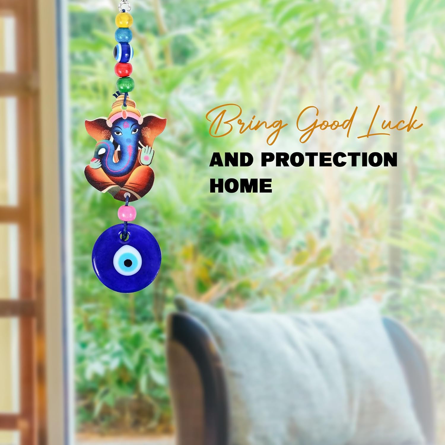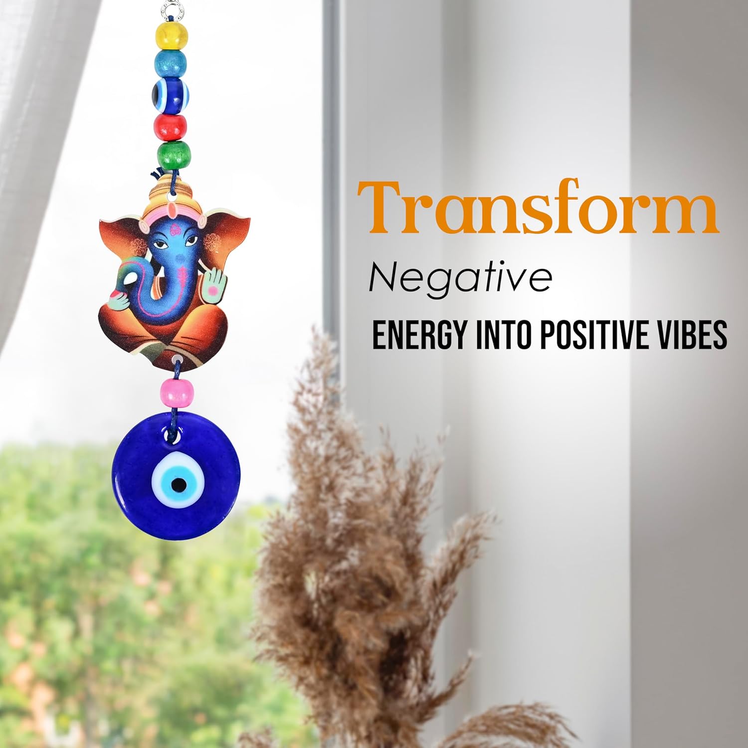 About this item Handcrafted Design: Each piece is meticulously handcrafted, combining detailed artistry with spiritual symbolism. Triple Protection: Features Evil Eye, Ganesha Ji, and Nazar Dosh Nivaran Yantra to offer protection from negative energy and obstacles. Spiritual Balance: The Ganesha Ji symbol removes obstacles while the Nazar Dosh Nivaran Yantra clears bad energy. Decorative Amulet: Beautifully designed as a hanging showpiece, adding an elegant touch to any decor while providing spiritual benefits.