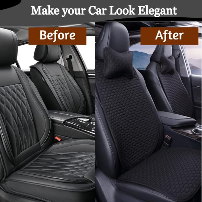 Car Seat Cover Protector mat - Material ; Breathable linen fabrics, Size front seat cover - 50 * 49 cm, Back rest seat cover ; 45 * 63 cm, The Raw fiber material extracted from flax is more flexible and smooth to the touch, which is much better quality and comfort than ordinary cotton and man-made fibers; Color: Black; Type: 3d design Car seat cover. Seat cover for cars -A breathable car seat cover cloth Absorbs and removes odor from the air Radiation protection. Simple and stylish hexogen pattern, perfectly matched with your car interior. The anti-slip rubber effectively fixes the car seat pad.