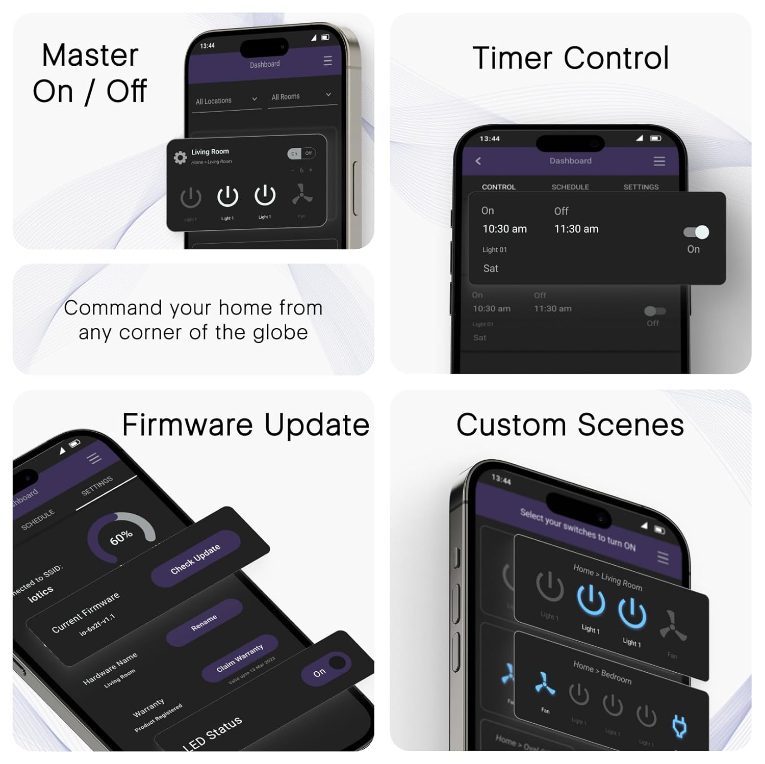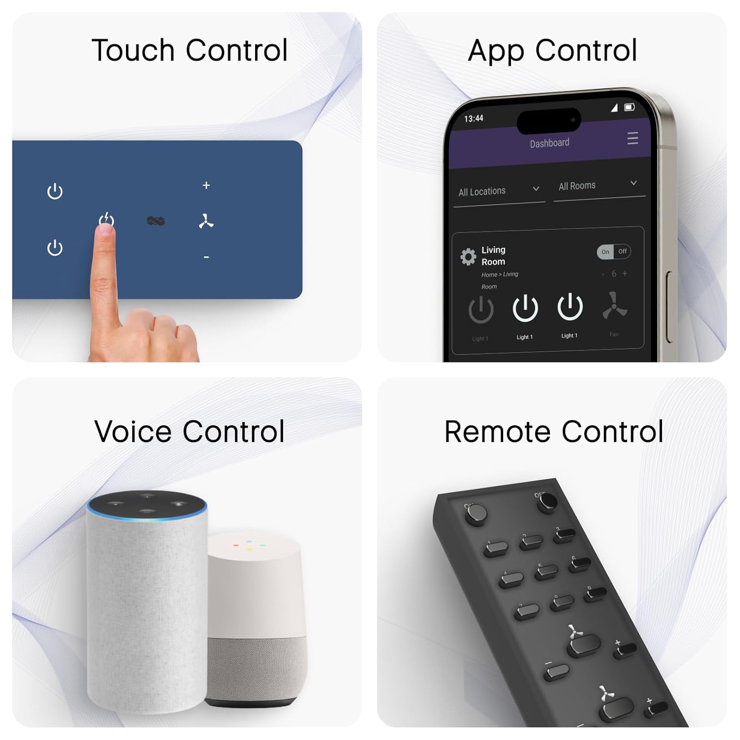 About this item ARTISTRY MEETS TECHNOLOGY - Elegantly designed touch switch with a tempered glass panel and works using capacitive touch technology. SMARTER HOME, BETTER LIVING - Smart switches for home automation developed using the latest Internet of Things (IOT) technologies/protocols providing high security and convenience such as mobile control from anywhere in the world and scheduling lights and fans at predefined times. No hub required. CONVENIENCE AT YOUR FINGERTIPS - This remote control smart switch board for home provides a convenient way to operate lights & fans from up to 22 feet away. VOICE-ACTIVATED LUXURY - This wifi smart switch for home can also be operated using voice control via Amazon Alexa or Google Home or any Android device.