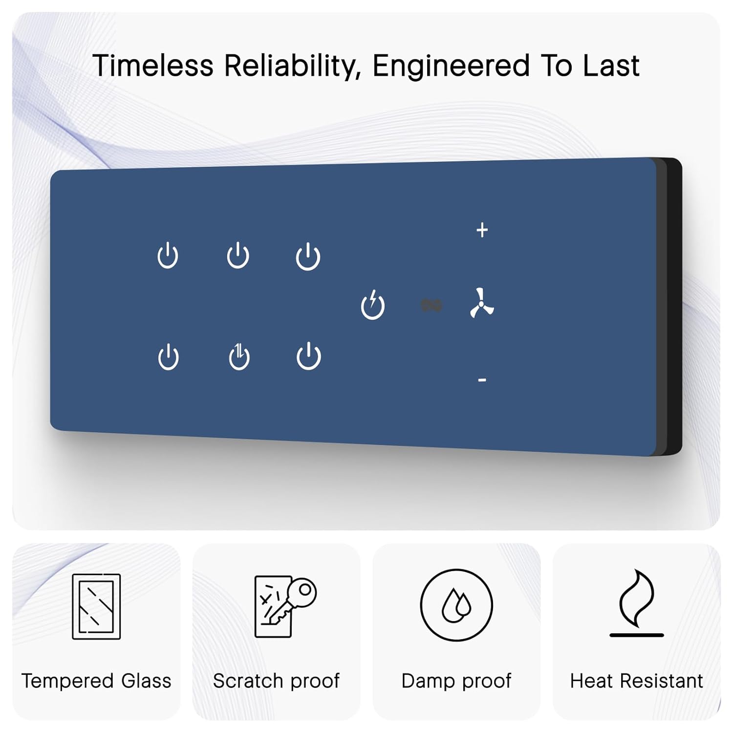 IOTICS Smart Wifi Switch Board: 7 x Switch & 1 Fan Module. Touch Control, Remote, App Control. Voice Control with Alexa & Assistant. Smart Touch Switch Board For Home Automation (Blue)